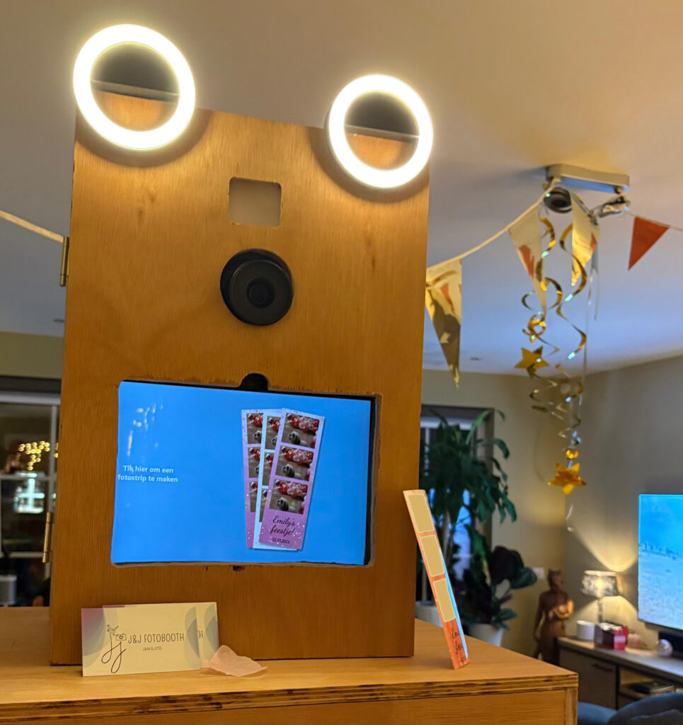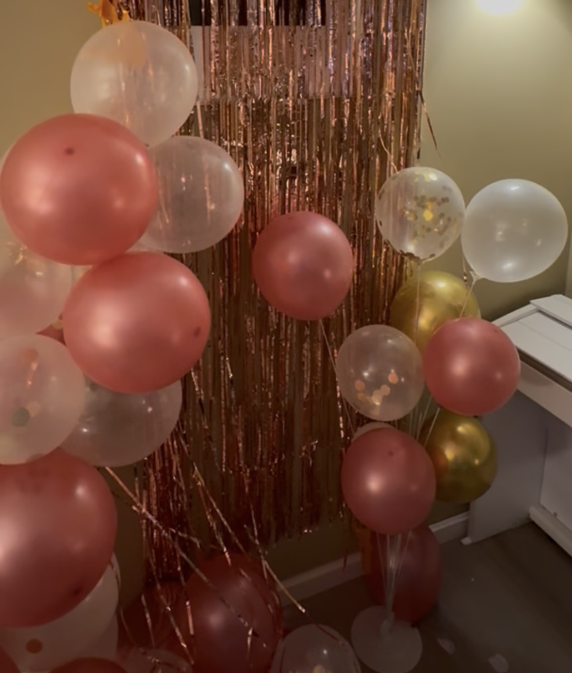 Bij dit feestje waren een foliegordijn en ballonnen als achtergrond bevestigd. Met behulp van ons frame kan een foliegordijn overal als achtergrond worden weggezet.